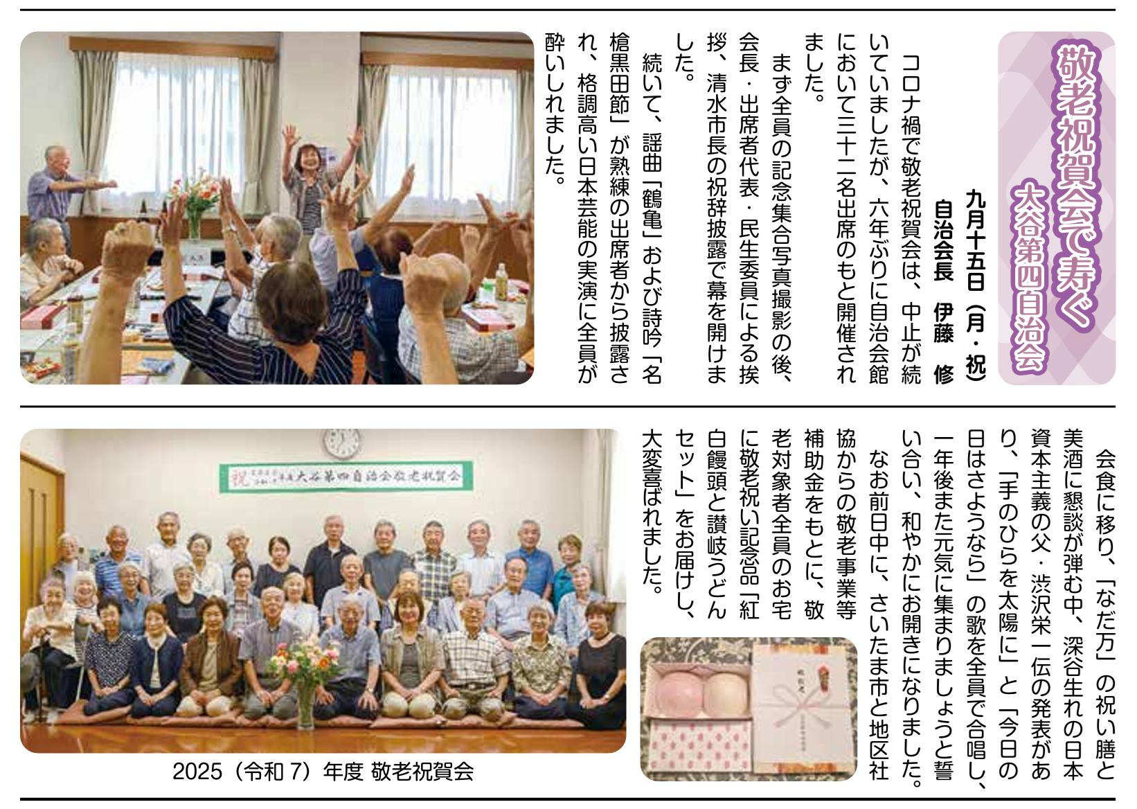 大谷第四自治会の敬老会の記事(伊藤会長記述)が七里地区社協の会報「いなほ」に掲載されました。